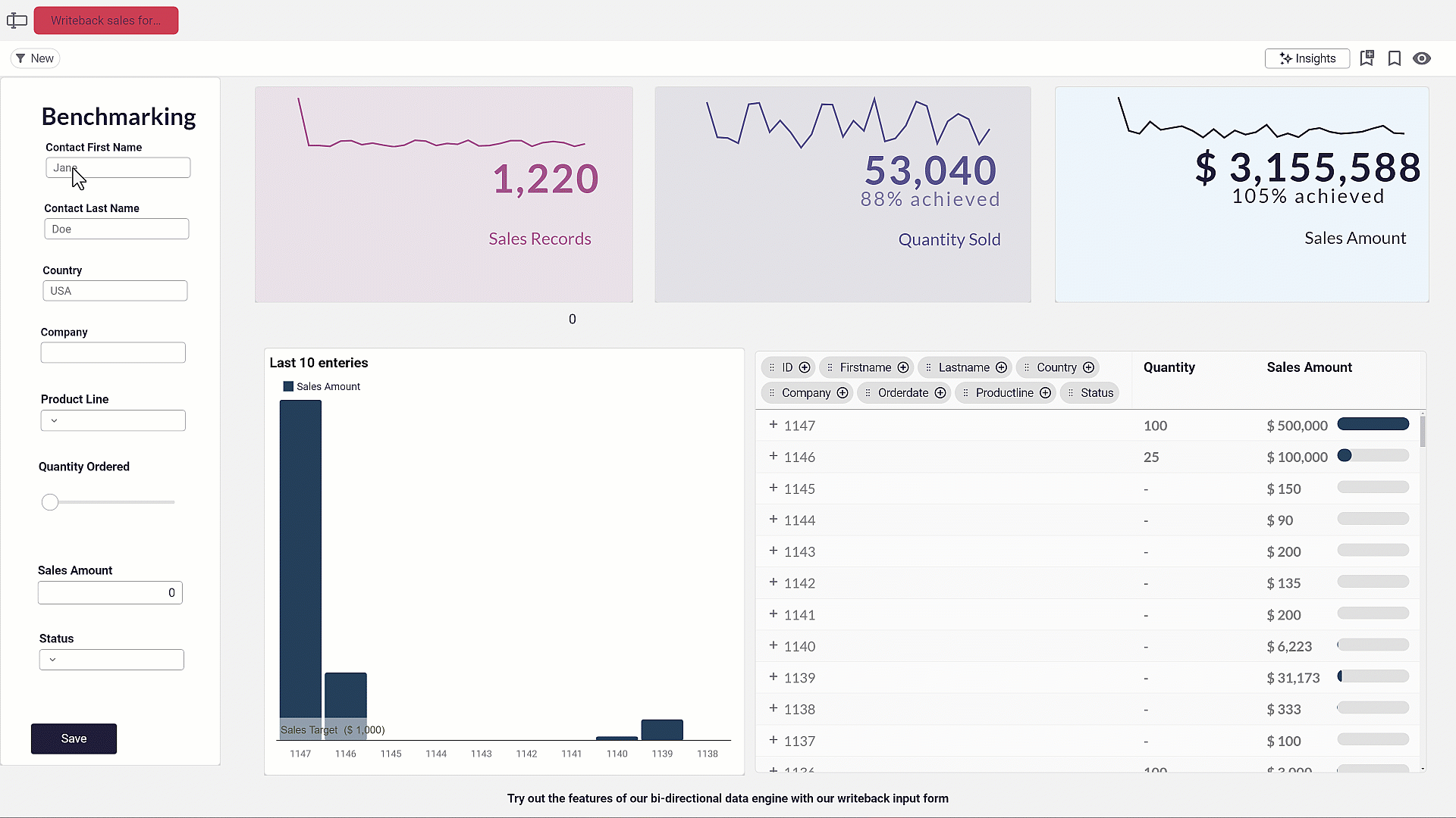 Writeback collapses this detour. Modern BI workflows support governed inputs directly in the interface – editable tables, forms, dropdowns, sliders, and structured input fields – all writing back to warehouse tables.
